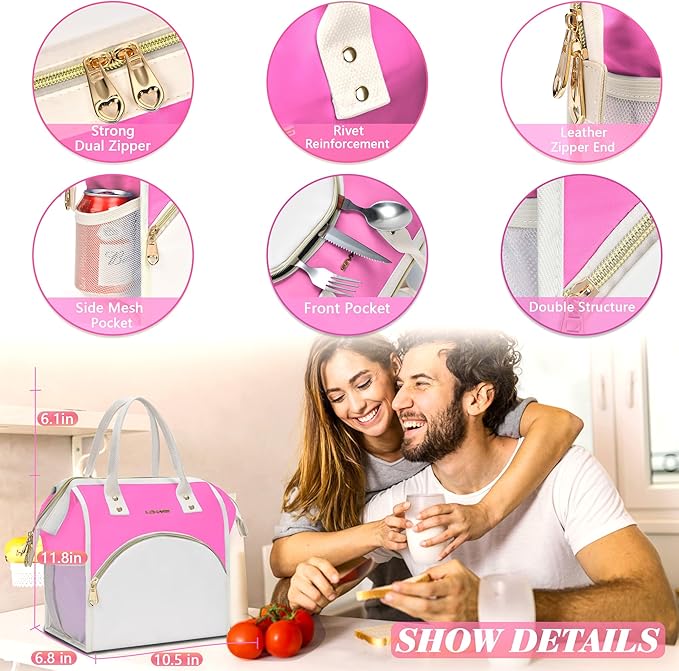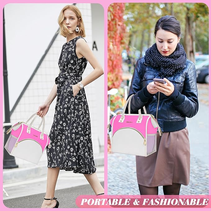 - 【Fashionable Lunch Bag】The uniquely designed lunch bag women, exquisite appearance and wrinkle-resistant shape make you say goodbye to the simple bag on the way to work and replace it with this practical and fashionable insulated lunch bag suitable for your elegant style. It can make your charm get the greatest praise! The fashionable style design makes the lunch bag is ideal to be used for men and women.