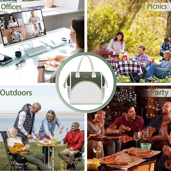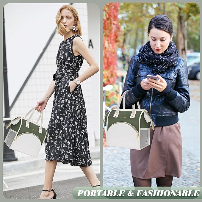 - 【Fashionable Lunch Bag】The uniquely designed lunch bag women, exquisite appearance and wrinkle-resistant shape make you say goodbye to the simple bag on the way to work and replace it with this practical and fashionable insulated lunch bag suitable for your elegant style. It can make your charm get the greatest praise! The fashionable style design makes the lunch bag is ideal to be used for men and women.