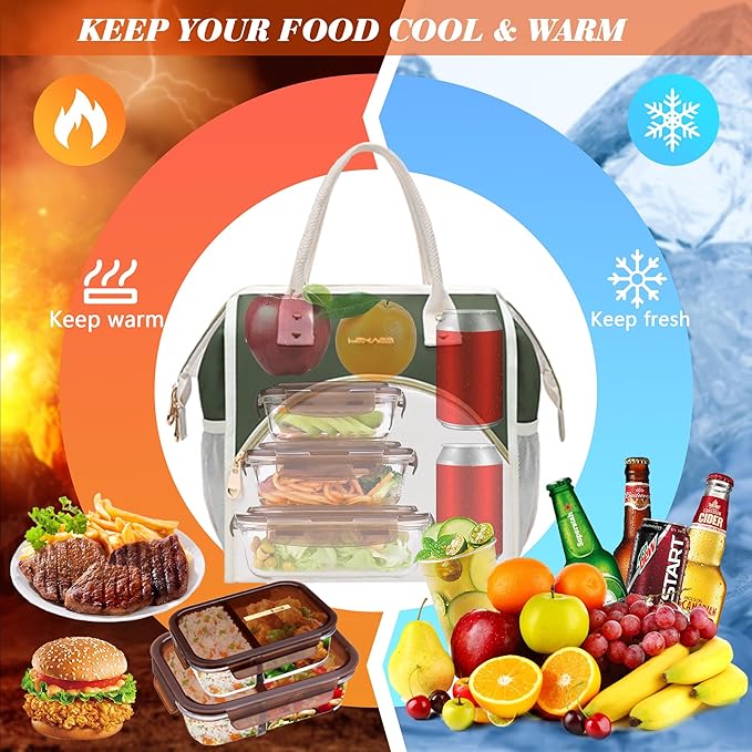 - 【Upgrade Aluminum Film】 Unlike others, our lunch bag women is made of aluminum film instead of EVA lining. The high-density three-layer fabric is lined with high-quality aluminum film material that can withstand high temperature and is not easy to wrinkle. High-quality aluminum film can keep food cool, warm and fresh for a long time. If you are looking for a lunch box that can withstand high temperature, it will impress you!