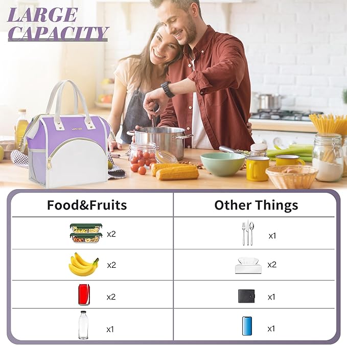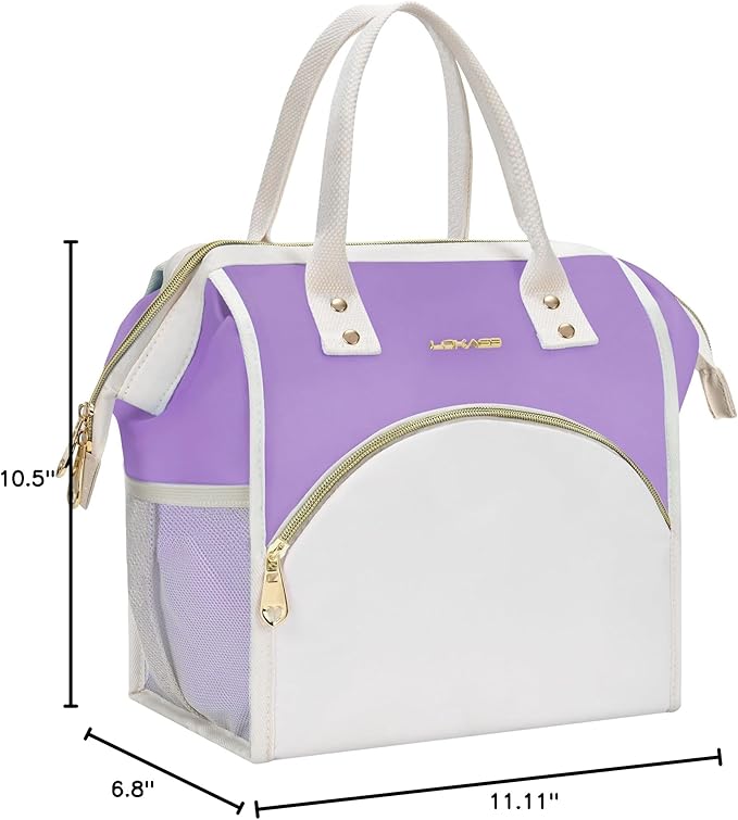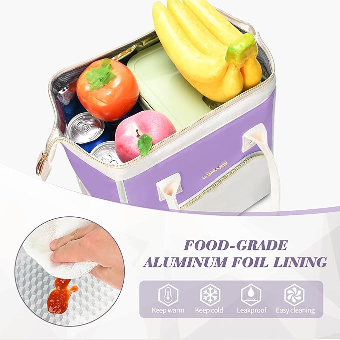 LOKASS Lunch Bag Women Insulated Lunch Box, Wide-Open Lunch Tote Bag Leak-proof Cooler Bag for Work Picnic-(Light Purple)