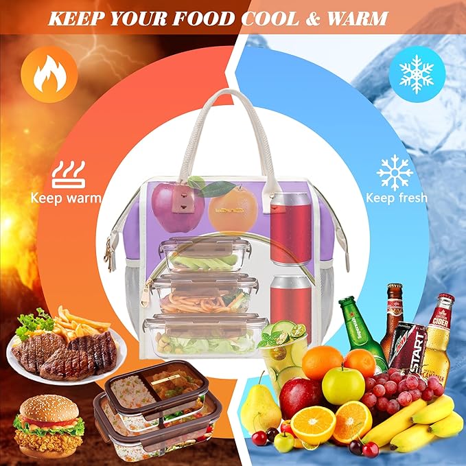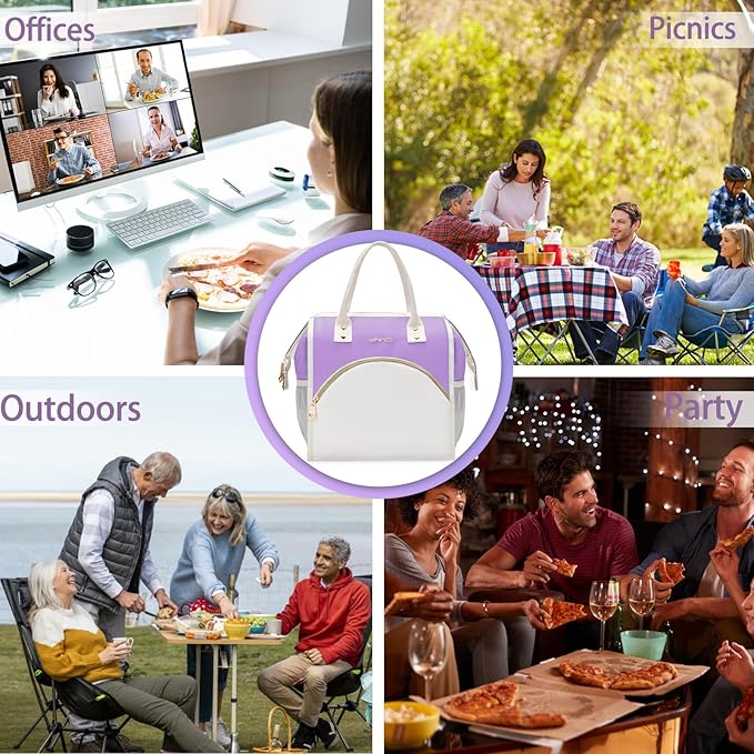 - 【Upgrade Aluminum Film】 Unlike others, our lunch bag women is made of aluminum film instead of EVA lining. The high-density three-layer fabric is lined with high-quality aluminum film material that can withstand high temperature and is not easy to wrinkle. High-quality aluminum film can keep food cool, warm and fresh for a long time. If you are looking for a lunch box that can withstand high temperature, it will impress you!