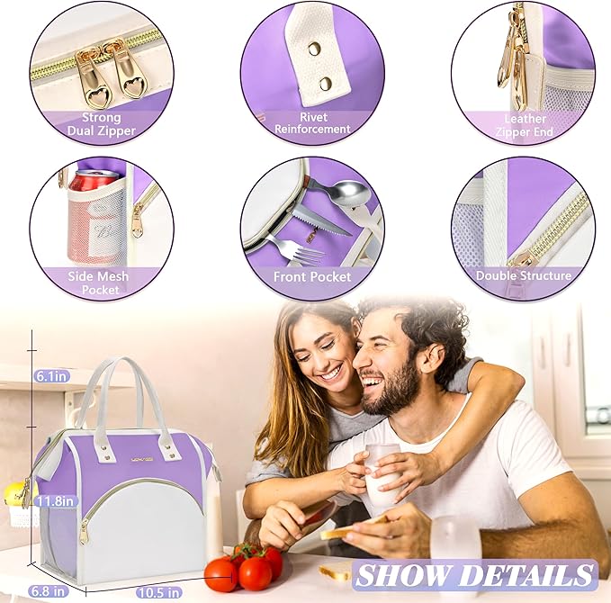 - 【Fashionable Lunch Bag】The uniquely designed lunch bag women, exquisite appearance and wrinkle-resistant shape make you say goodbye to the simple bag on the way to work and replace it with this practical and fashionable insulated lunch bag suitable for your elegant style. It can make your charm get the greatest praise! The fashionable style design makes the lunch bag is ideal to be used for men and women.