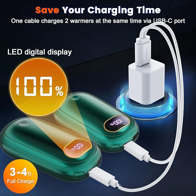 - 【Hand Warmers Rechargeable 2 Pack】Our hand warmers come with 2 units, a total of 14000mAh for lasting warmth and power. Our rechargeable hand warmer also serves as a power bank and offers real-time battery and heating status through the LED display, no more battery anxiety. A must-have for warmth and convenience!