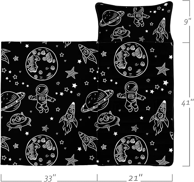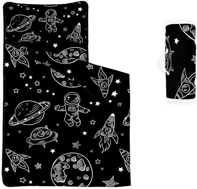 Space Nap Mat - Space Ship Galaxy Sleeping Bag with Removable Pillow - Daycare and Sleepovers Preschool Kindergarten Bedding Set for Kids Toddler Boys Girls