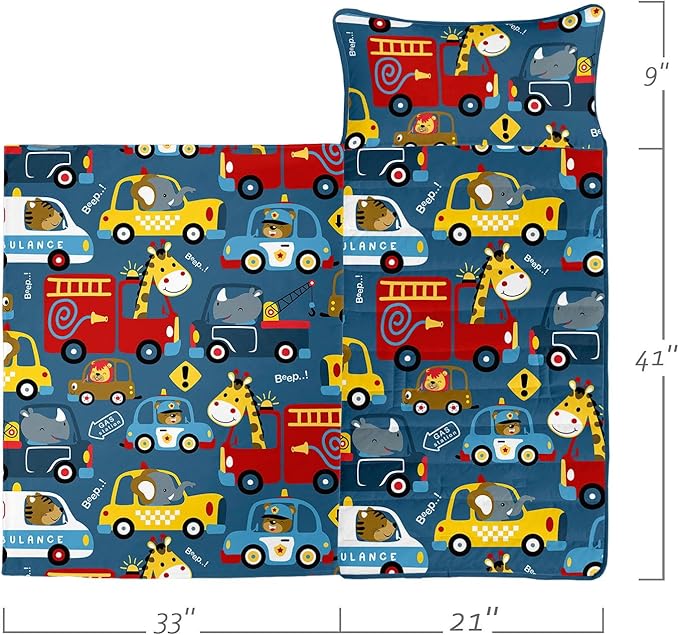 - Size - Nap mat measures 60“x21”x3“, comes with 21”x9" removable pillow. Attached blanket measures 51” x 33”. Suitable for children ages 3 to 7.