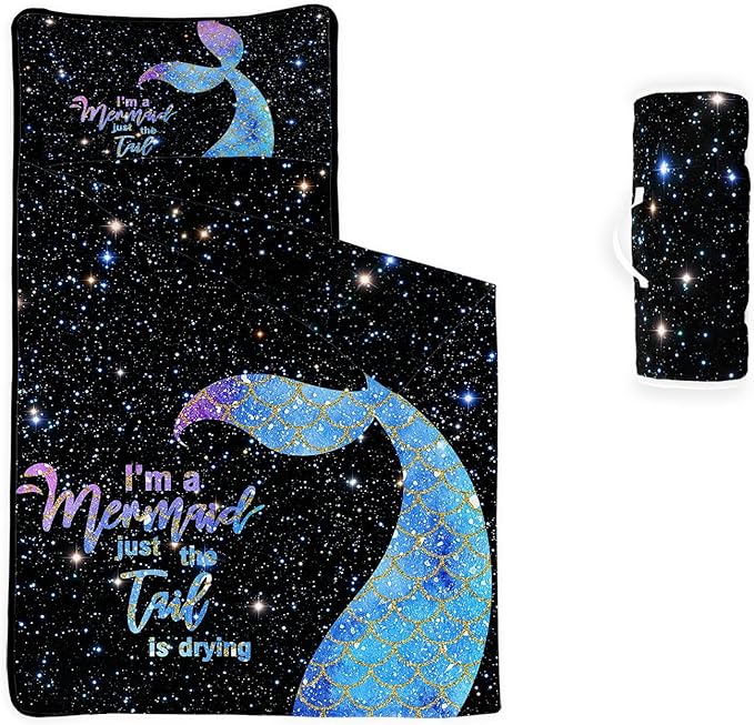 - Portable - a sleeping mat, blanket and pillow. Rolled up easily with hook and loop fastener and convenient carry handle. Perfect for preschool, daycare and sleepovers.