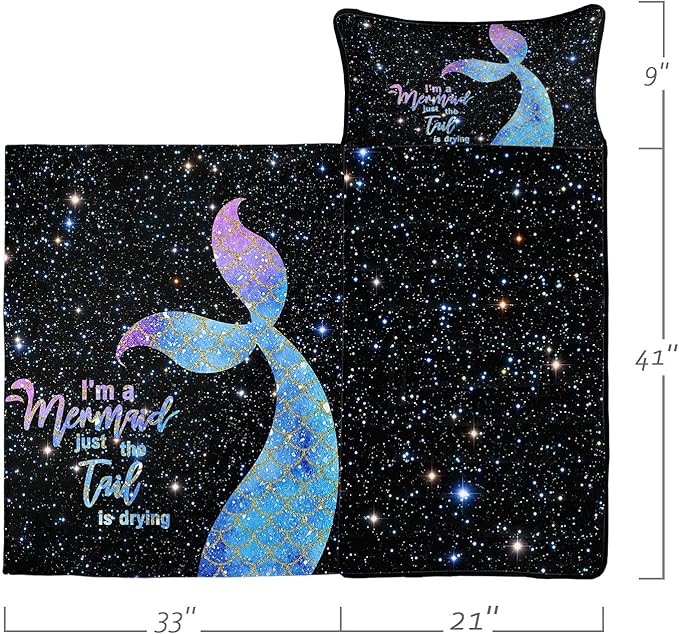 - Size - Nap mat measures 60“x21”x3“, comes with 21”x9" removable pillow. Attached blanket measures 51” x 33”. Suitable for children ages 3 to 7.