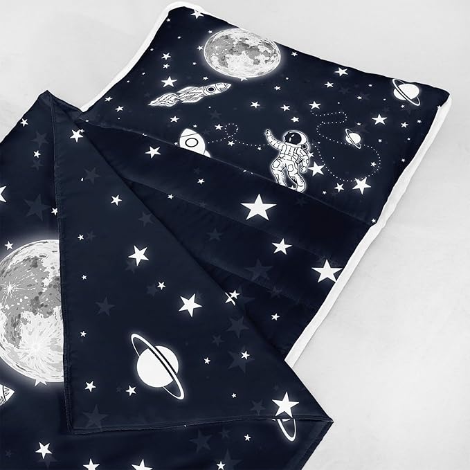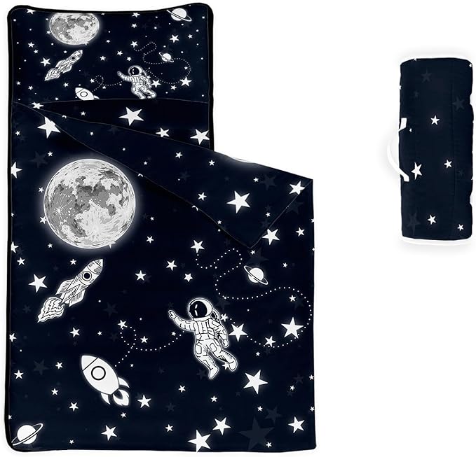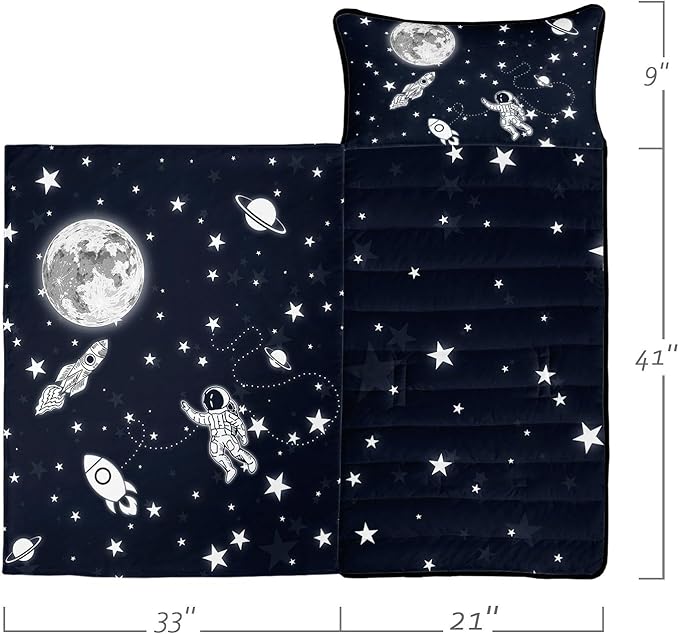 Space Nap Mat - Space Ship Galaxy Sleeping Bag with Removable Pillow - Daycare and Sleepovers Preschool Kindergarten Bedding Set for Kids Toddler Boys Girls