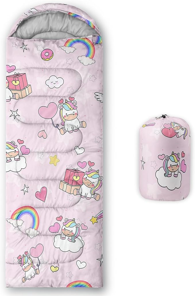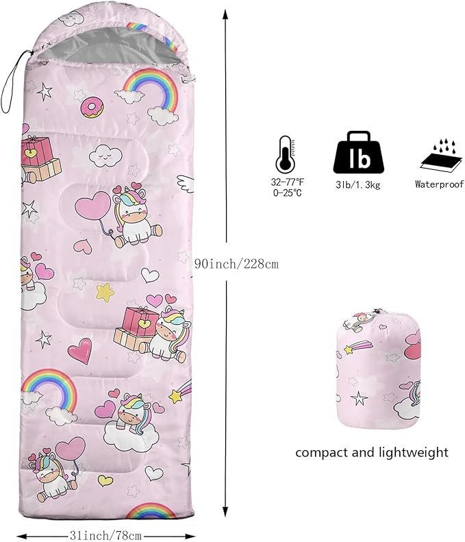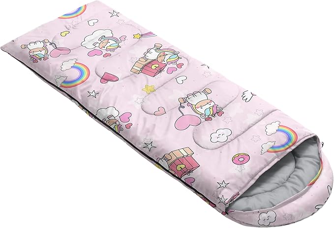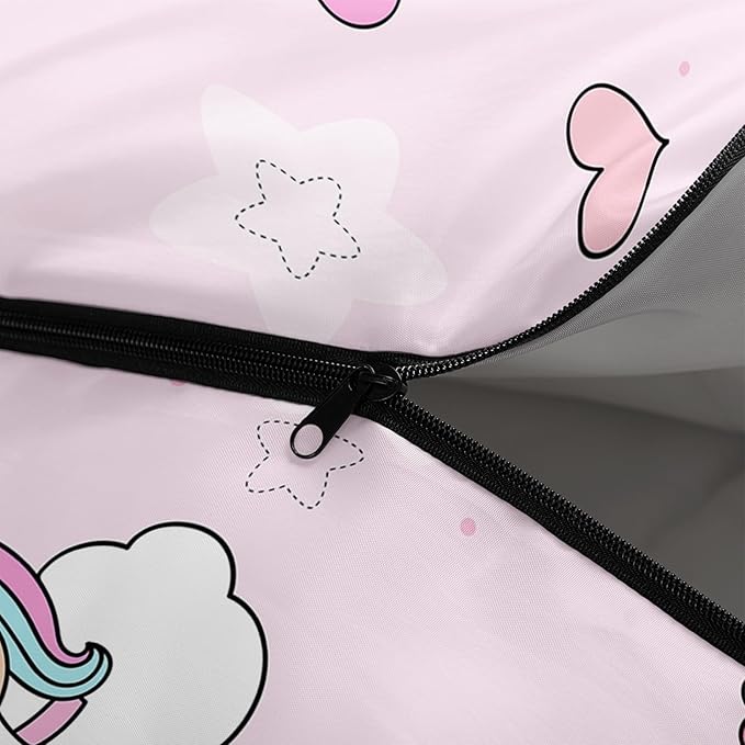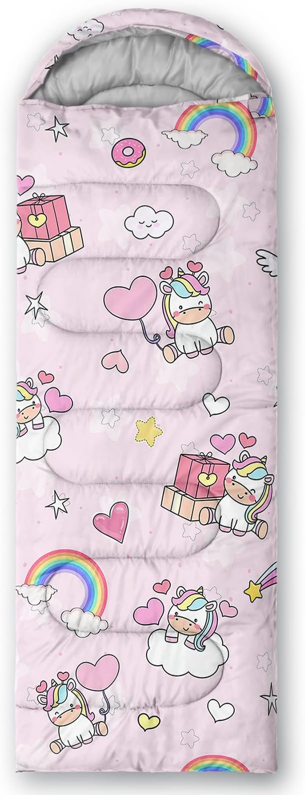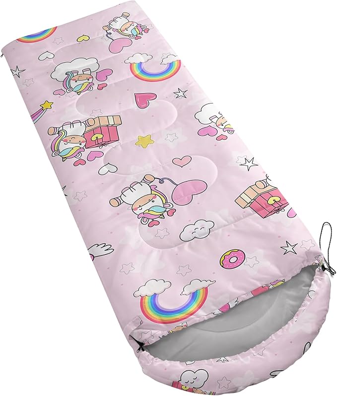 - A THOUGHT OUT DESIGN: Drawstring allows you to tighten hood and keep you warm. The idea of having a zipper at the foot to allow more warm or cool air to enter or exit the bag in different times of the season.Our Pink Rainbow Pony sleeping bags are designed to provide much needed rest after a full day of outdoor activities.