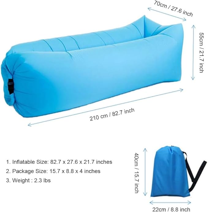 - ★ Portable and perfect for outdoor & indoor:With a carrying bag, specially suitable for camping hiking, beach swimming, outdoor BBQ, parks, backyard; You can use it as an inflatable bag, air hammock, air bean bags, cloud lounge, lazy bag, air filled lounger, etc