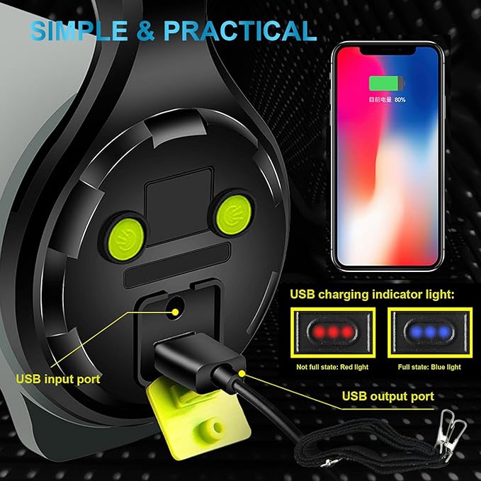 - 【USB Fasting Charging & Power Bank】The advantage of rechargeable spot light’s USB is that the charging speed is faster, the charging port is not easy to wear, and more durable. It can also work as a portable power bank to charge your devices. The three blue indicator lights will show the ΒATTERY life(25%,50%,75%100%).