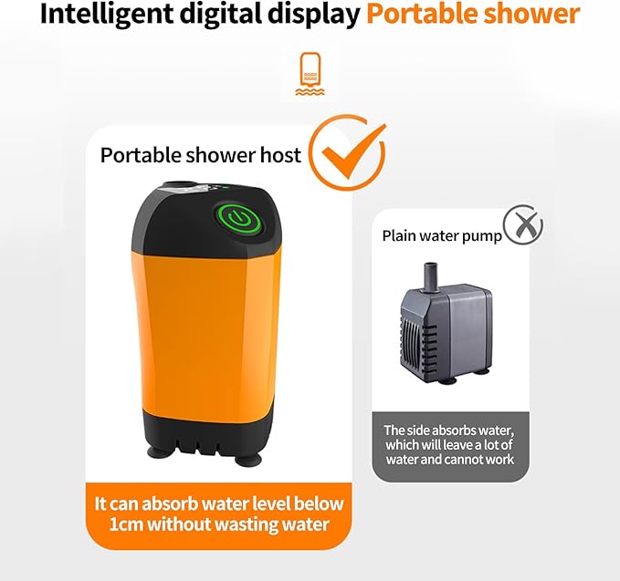- Bottom upgrade design: Pump has four small suction cups, Can be attached to a smooth surface, Will not pull the hose to cause the pump above the water level to affect the use of function. Showering pump bottom suction design can be sucked to less than 2.54 inch of water level, Will not waste water.