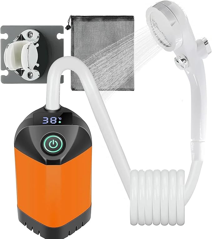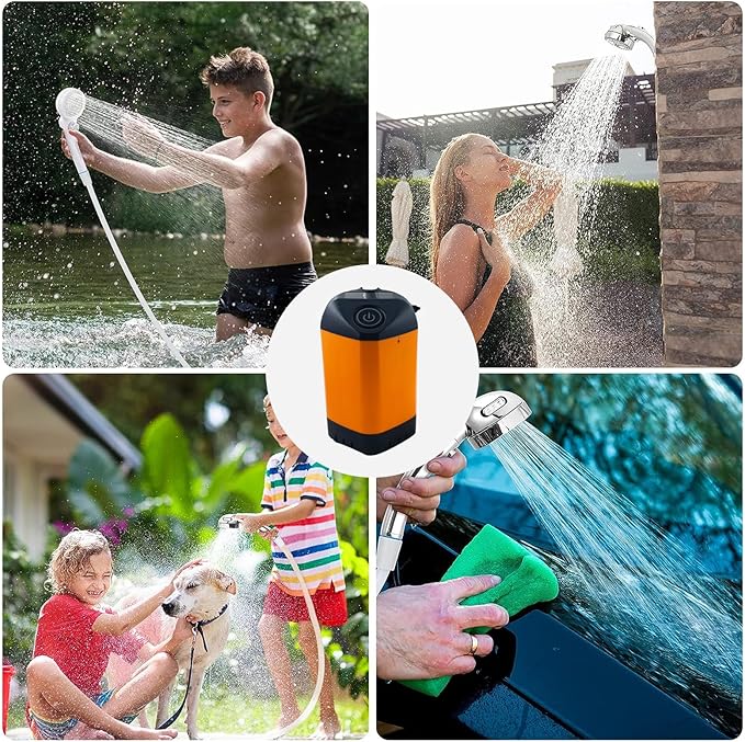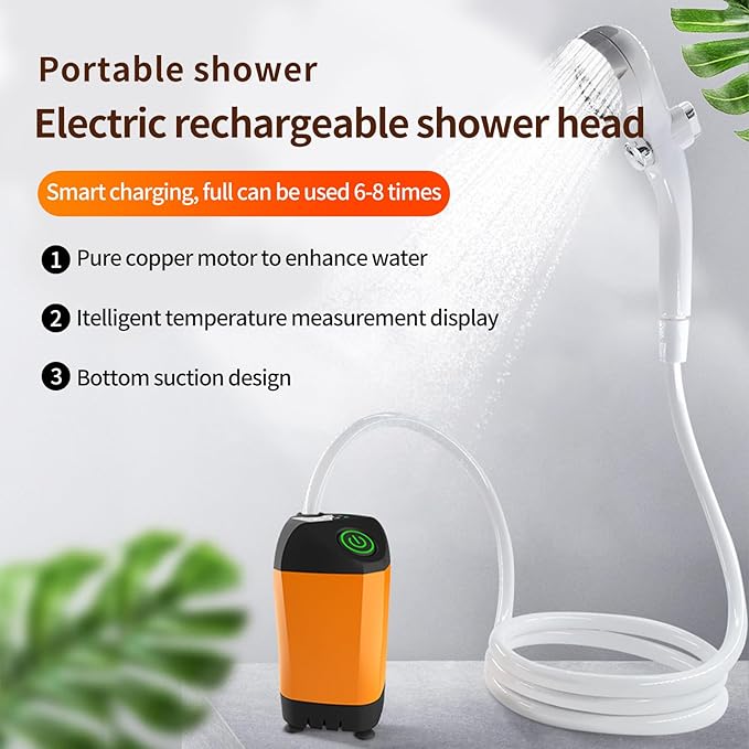 Portable Shower, Portable Camp Shower Pump with Rechargeable Battery, Portable Outdoor Shower Head for Camping, Hiking, Traveling (Orange)