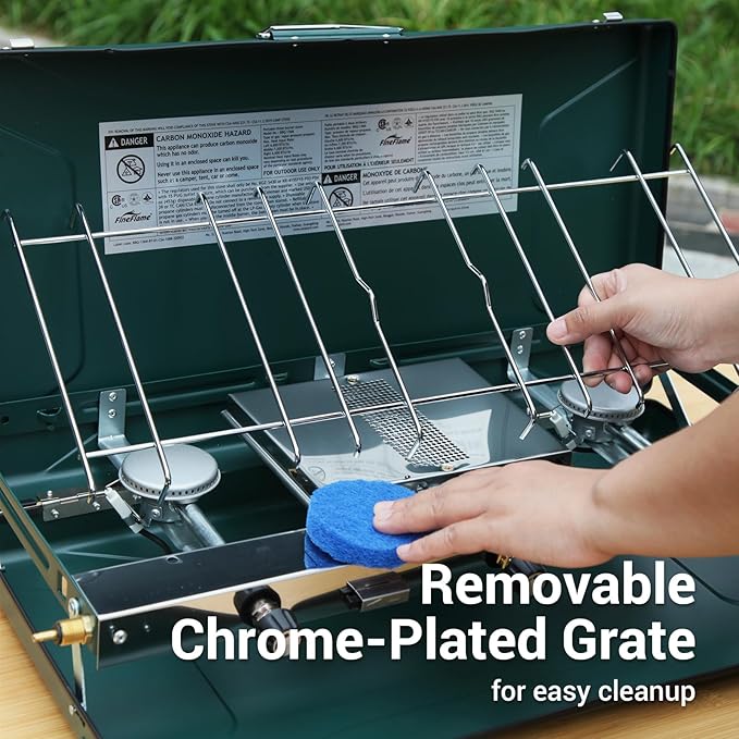 - EASY TO CLEAN: Our portable propane stove comes with a drip tray that makes it easy for quick clean up. You won’t be bothered by stains on tables or clothes. All you need to do after cooking is to remove the tray and wipe it until it looks clean again, and put it back to the camping stove case
