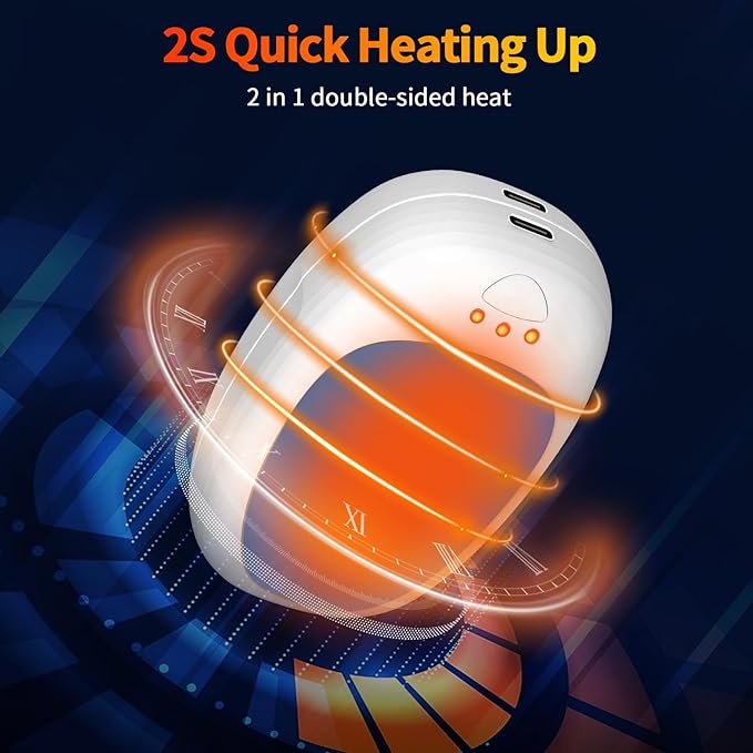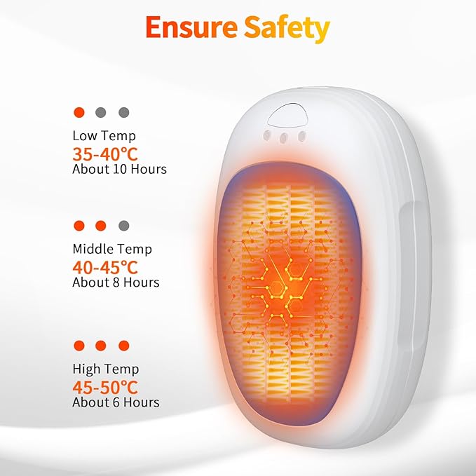 - 【2S Quick Heating Up】 Electric hand warmer with 3 modes of temperature, they are low temperature(35-40℃), middle temperature(40-45℃), high temperature(45-50℃) for you to choose. It will heat up in 2 seconds and provide warmth for you after long press the button.