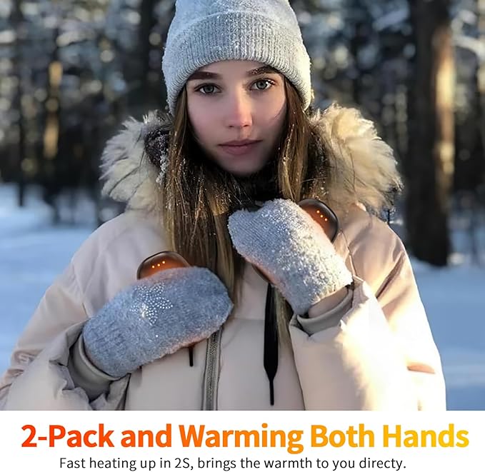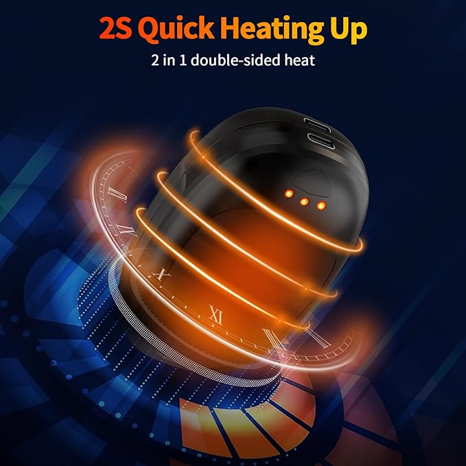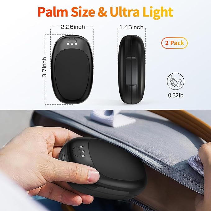 - 【Upgraded Hand Warmers 2 Pack】 Rechargeable hand warmers designed with double-sided heating, you can merge them to get one hand warmer, or separate it to have two reusable hand warmers, which can provide warmth for your both hands. It is palm size and ultra light, you can easy to put into your each pocket.