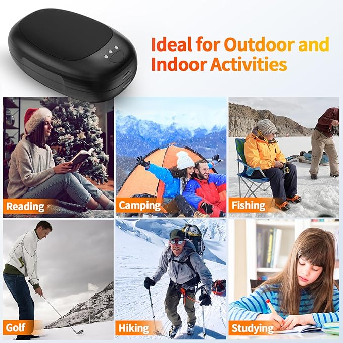 - 【Long Battery Life & Rechargeable】 Handwarmers built-in 2000mAh x 2 rechargeable battery, which can provide 6-10 hours of continuous heating each pack, perfect for all-day outdoor and indoor activities. Such as camping, hiking, fishing, skiing, walking, hunting, playing golf, reading, watching TV, etc.(Notice: Not support power bank function)
