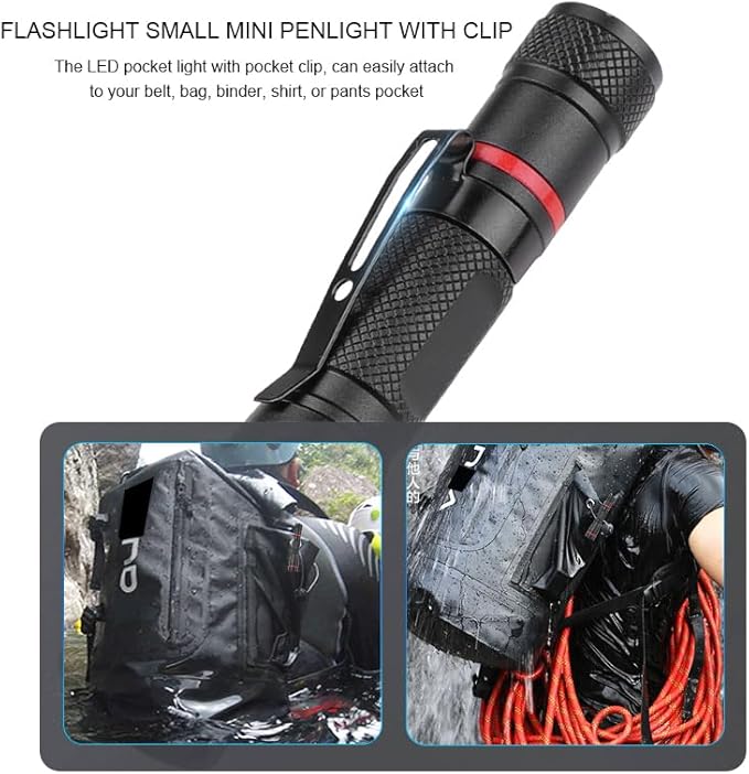 - Pocket Size: This pocket flashlight is small and light enough to slip into a pocket, backpack. With a clip, the pen light could also be used as cap light for your convenience. Easy to clip to your belt, bag, binder, shirt, or pants pocket.