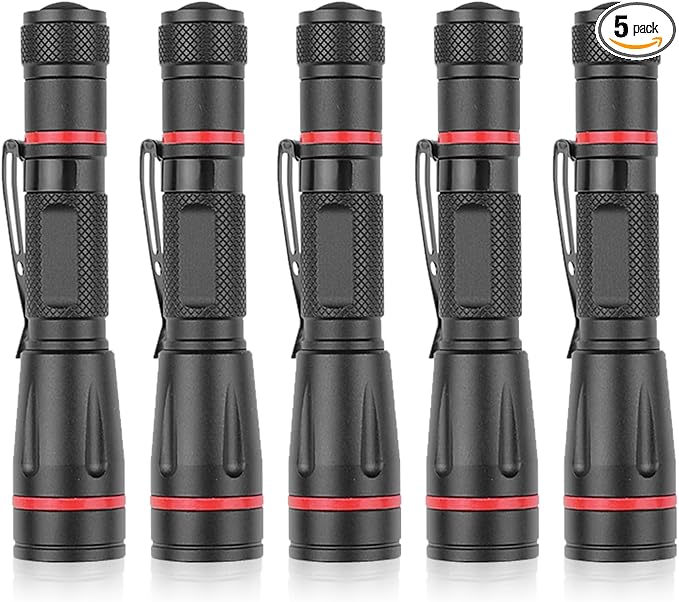 5 Pack LED Flashlights, Handheld Pen Light Flashlight, Pocket Torch PenLight with Clip, Zoomable, Waterproof, Slim Led Pen Flashlight for Camping, Outdoor