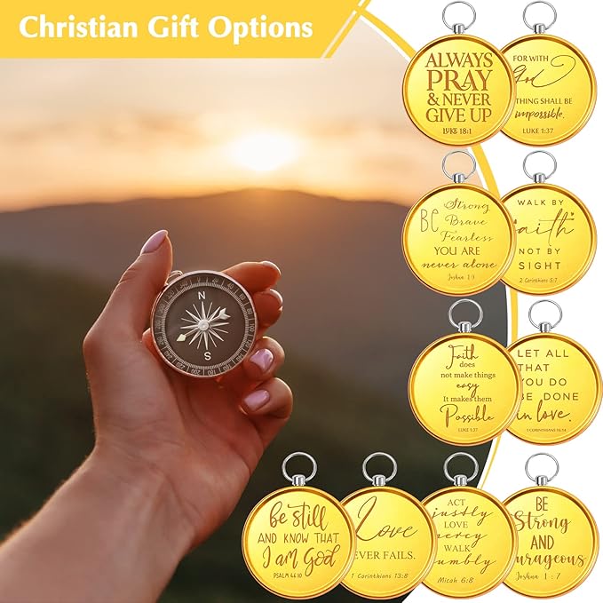 Fumete Christian Gift Compasses Hiking Scripture Religious Bible Vintage Church Sunday School Gift for Student Teacher