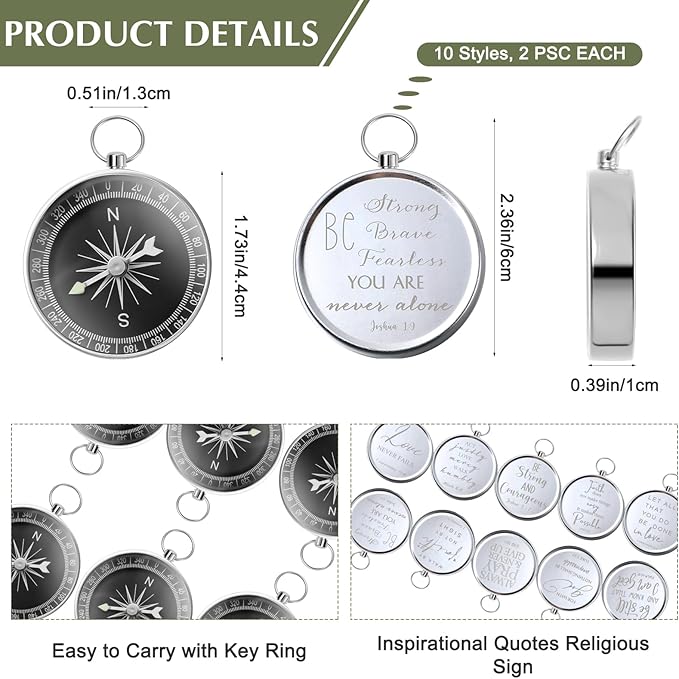 - Sufficient to Use and Share: you will receive 20 pieces of compass gifts for men and women, including 10 different styles, 2 pieces for each style, the quantity is enough to meet your using, gifting and sharing needs