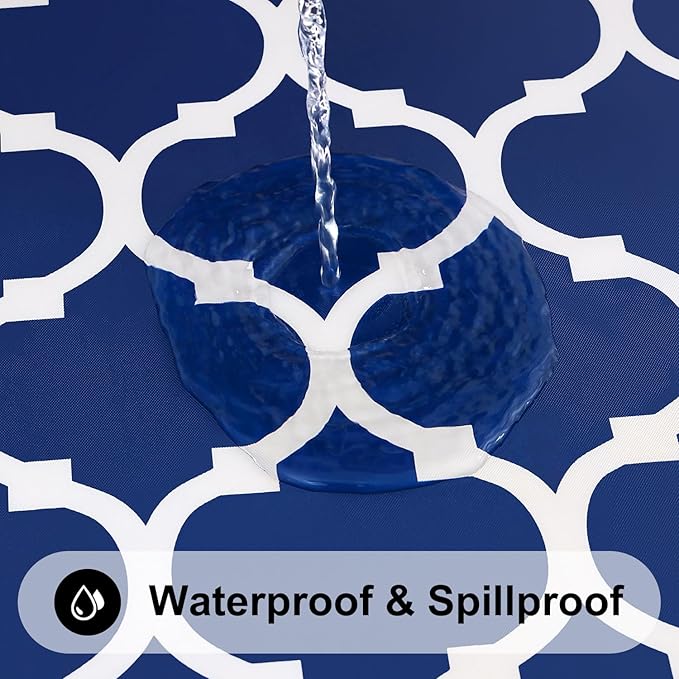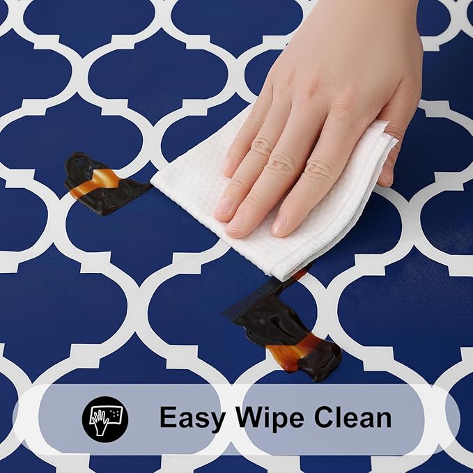 - [Waterproof & Wipe Clean] Our table cover surface is made of selected vinyl material, which can effectively waterproof. Spill proof coating makes tablecloth easy to clean, just wipe it off with a damp sponge or rag in a minute.