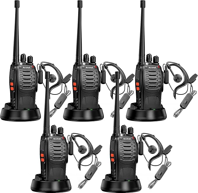 Rechargeable Long Range Two-Way Radios with Earpiece 5 Pack Arcshell AR-5 Walkie Talkies Li-ion Battery and Charger Included (5 Pack)