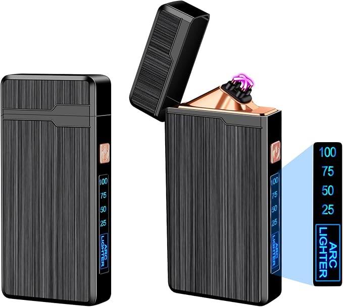 2 Pack Electric Lighter,USB Rechargeable Lighter, Plasma Dual Arc Lighter, Windproof Flameless Lighter, Pocket Metal Lighter with LED Battery Indication for Indoor Outdoor (Black&Black)