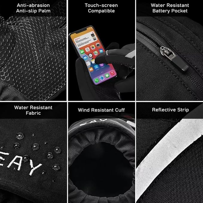 EAY Heated Gloves for Men Women with Rechargeable 7.4V 3000mAh Battery, Touch Screen Waterproof Heated Motorcycle Gloves, Winter Warm Electric Gloves for Ski Work Snowboarding Hunting Hiking Camping