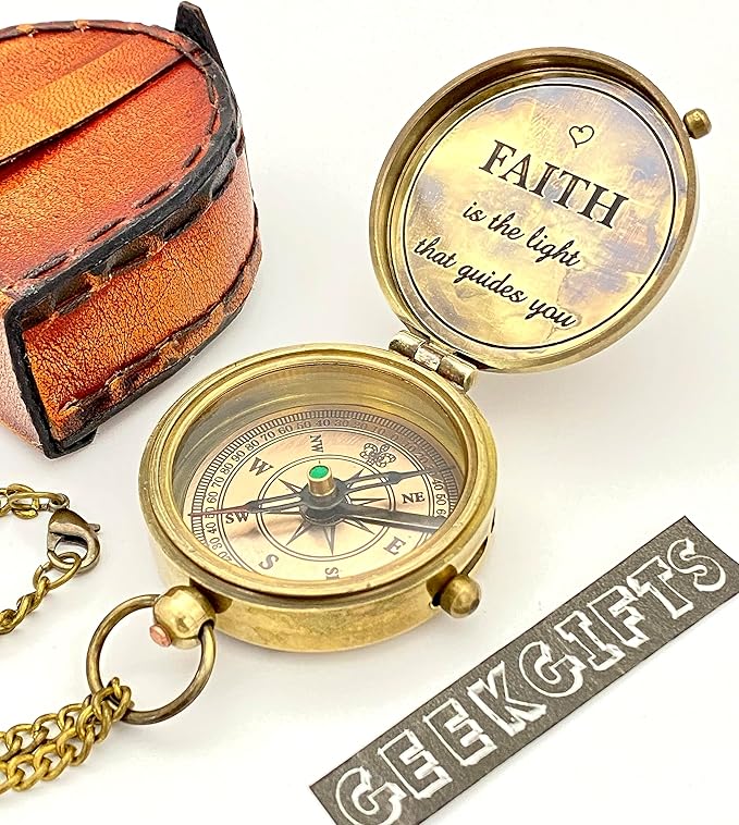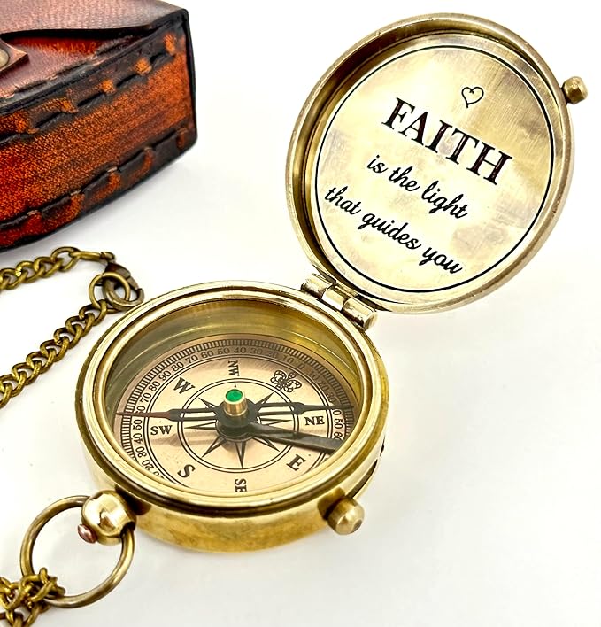 - Inspiration gifts : The engraved “Faith is the Light ” compass serves as a unique inspiration gift, encouraging its recipient to navigate life with confidence and purpose.