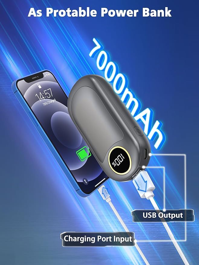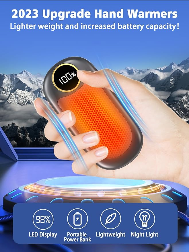 - Multifunctional Hand Warmers Rechargeable 1 Pack: Using advanced temperature control chips to accurately control the temperature, whether you are outdoors or indoors, it can warm your hands and keep the cold away. It can be used as an emergency power bank when you are out, charging your mobile phone or other devices at any time. Our electric hand warmers built-in LED light which can provides lighting in the dark