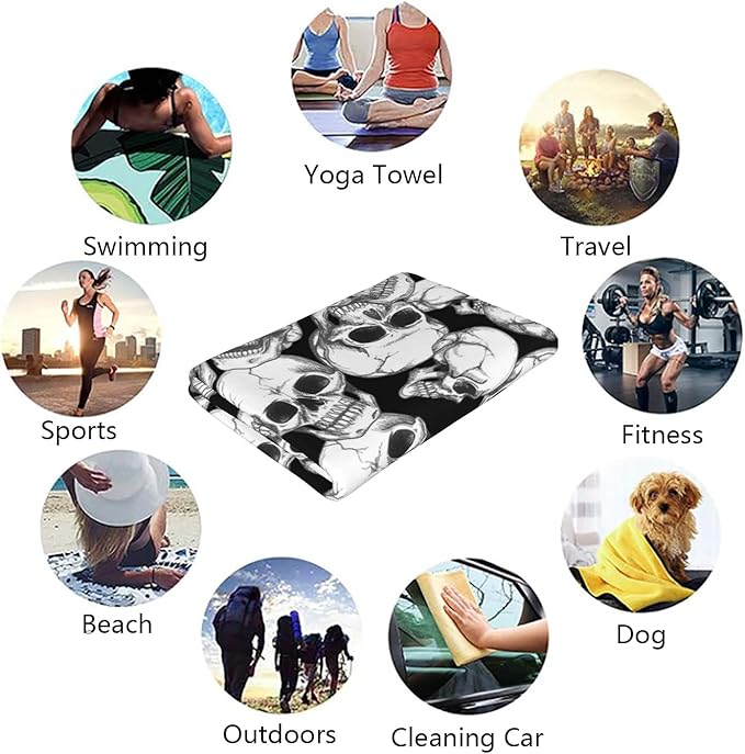 Skull Halloween Beach Towel, Skeleton Quick Dry Super Absorbent Microfiber Bath Towels, Large Towels for Swimming Bathroom Spa Pool 60x30 in