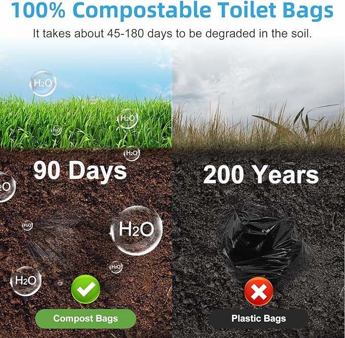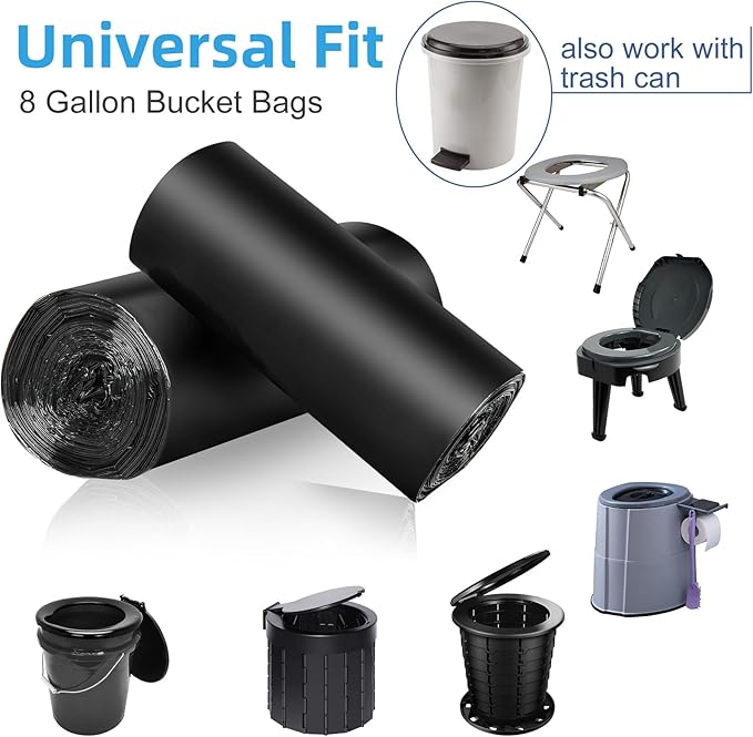 - 【Universal Biodegradable Bags】The camping potty bags for portable toilet can fit most 5 gallon or 8 gallon portable toilets, bucket toilet or the seat on a frame style, like camping toilet, portable potty for adults, compost toilet, portable folding toilet, boat toilet, rv toilet, travel car toilet etc. You also can use it as eco-friendly composting toile bags or for indoor home compost bag.