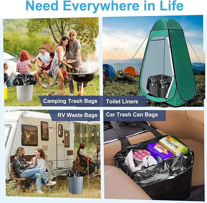 - 【Widely Use】 The composting toilet bags are widely used in camping, hiking, boating car travel, road trips etc. Also used in kitchen, bathroom, living room, office, school as indoor disposable trash bags. Any question about toilet seat bags, please contact us freely!