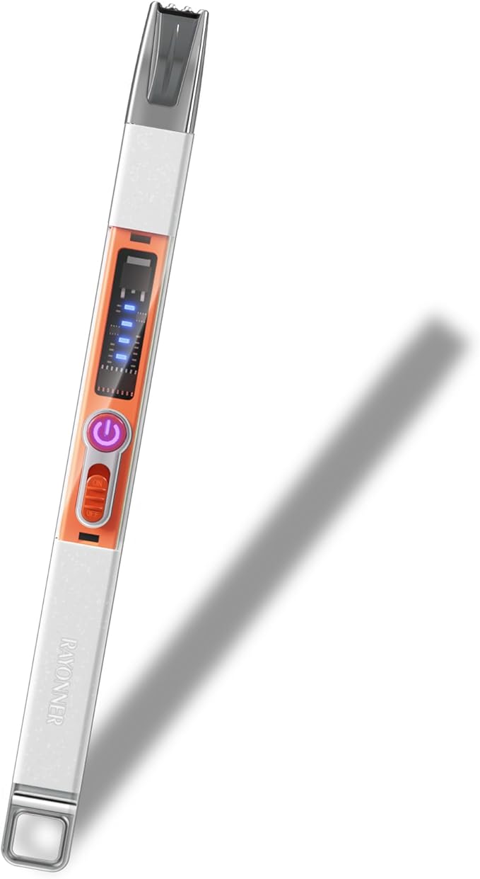 RAYONNER Electric Candle Lighter Plasma Arc Lighters Windproof & Flameless USB with Rechargeable Double Safety Switch for Candle BBQ Camping (1 Pack - White-Orange)