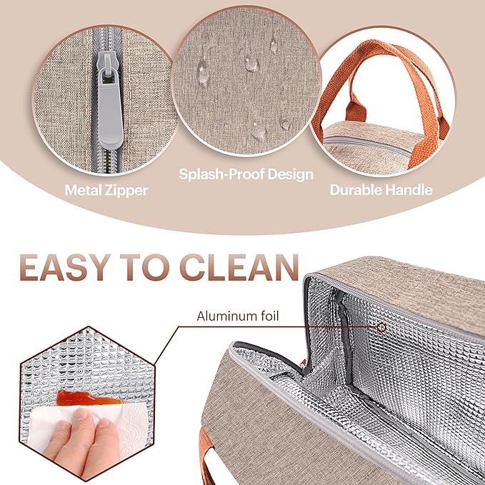 - ★PREMIUM & SAFE MATERIAL--This insulated lunch bag has a waterproof Oxford cloth surface layer that is tear-resistant and durable. The thick insulating foam middle layer keeps food cold, warm, or fresh for several hours. The aluminum foil lining is easy to clean and keeps the inside odour-free. Made with BPA-free materials, this lunch tote ensures you have healthy and safe food.