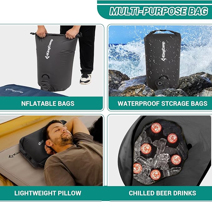 - 【MULTI-USE DESIGN】A multi-use outdoor sleeping pad inflation pump that can be used as a stuff sack, dry bag, garbage bag, pillow and more.