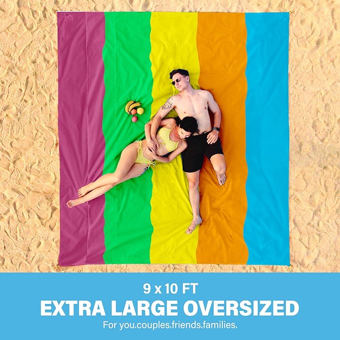 - Oversized Extra Large Beach Blanket :10'X 9'Size,2-8 Adults in total,Made by parachute fabric,More than 30% larger than other blankets,22.5 oz easy to carry!