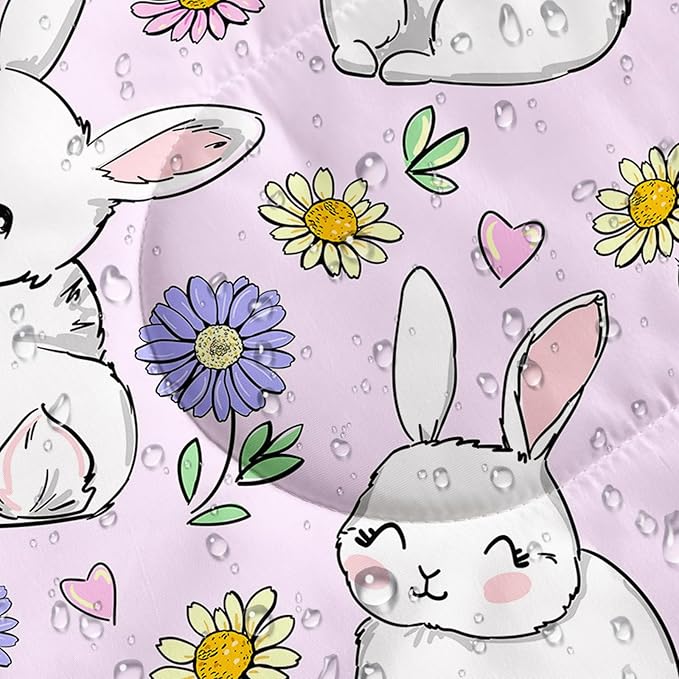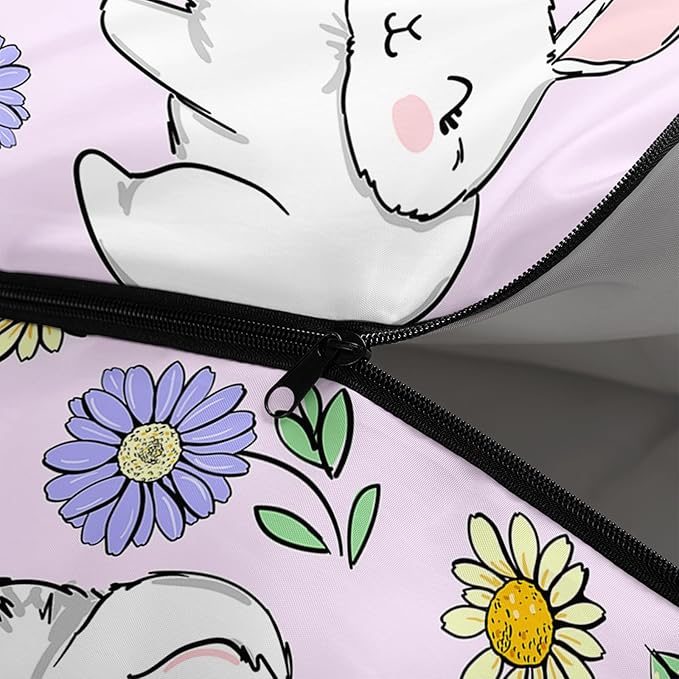 - Special Feature : Cartoon White Rabbit Daisy Print, Zipper at the Foot
