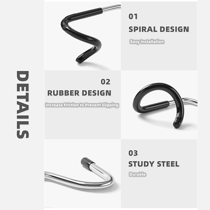 - 【ANTI-SLIP DESIGN】Equipped with sturdy anti-slip rubber on the fixing end, which can ensure the hook firmly stay on the poles, branches or any other columns and there is no need to worry about falling or shaking.