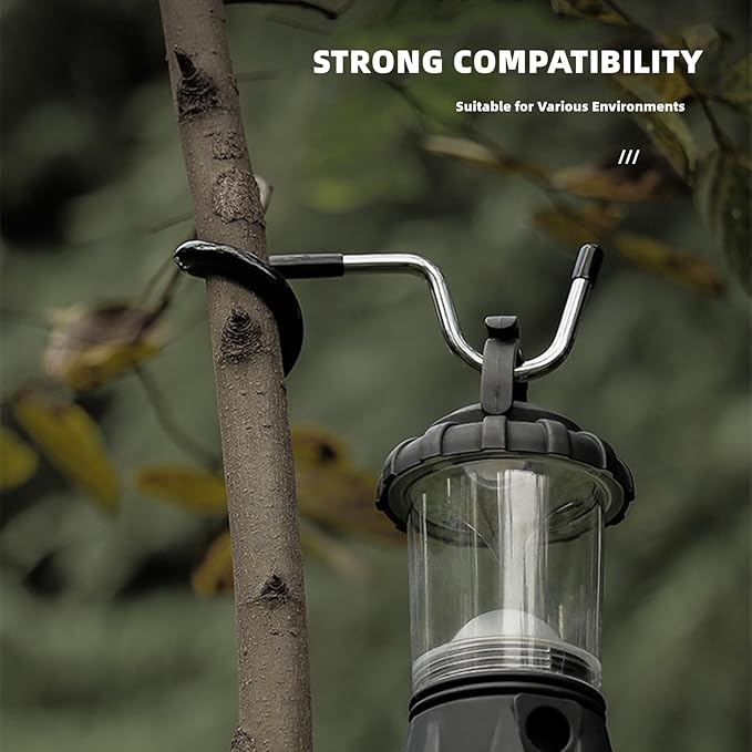 - 【WIDELY APPLICATION】This camping hook hanger is great for hanging outdoor lanterns, clothes, heaters, water bottles, bags, and any other accessories with string when camping, bivouac, hiking, fishing etc.