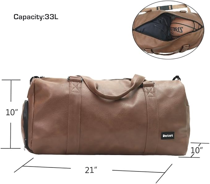- Durable & Practicality: With environmental-friendly PU leather, rotot weekender bag can be used as a travel bag with vintage stylish fashion. And this overnight bag has 21”×10” ×10”. With a 33L capacity, it can easily hold 4 days’ worth of clothes.