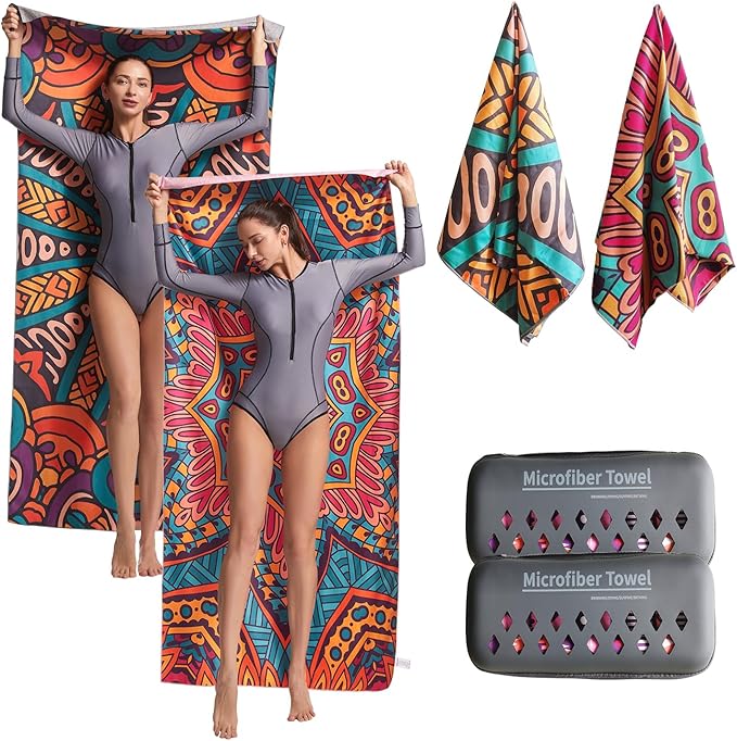 - ✔️【SUPER ABSORBENT, FAST DRY AND COMPACT!】 Microfiber is a thin lightweight material that is ultra-absorbent but engineered to dry 3 x faster than regular towels. X-Large beach towels are packed in EVA breathable boxes, and Large beach towels are packed in breathable bags.