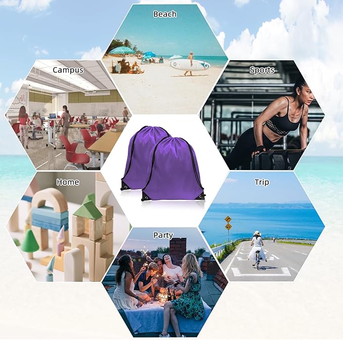 - Multipurpose for Everyday Usage: These cinch sack drawstring backpacks are suitable for various occasions, such as birthday parties, camping themed parties, pool parties, and you can also bring them with you when working, traveling, exercising, or even shopping at the supermarket. These bulk backpacks can also be used for home storage and can be shared with family and friends. These pull string bags can also be folded, making them very easy to carry.