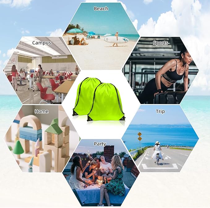 - Multipurpose for Everyday Usage: These cinch sack drawstring backpacks are suitable for various occasions, such as birthday parties, camping themed parties, pool parties, and you can also bring them with you when working, traveling, exercising, or even shopping at the supermarket. These bulk backpacks can also be used for home storage and can be shared with family and friends. These pull string bags can also be folded, making them very easy to carry.