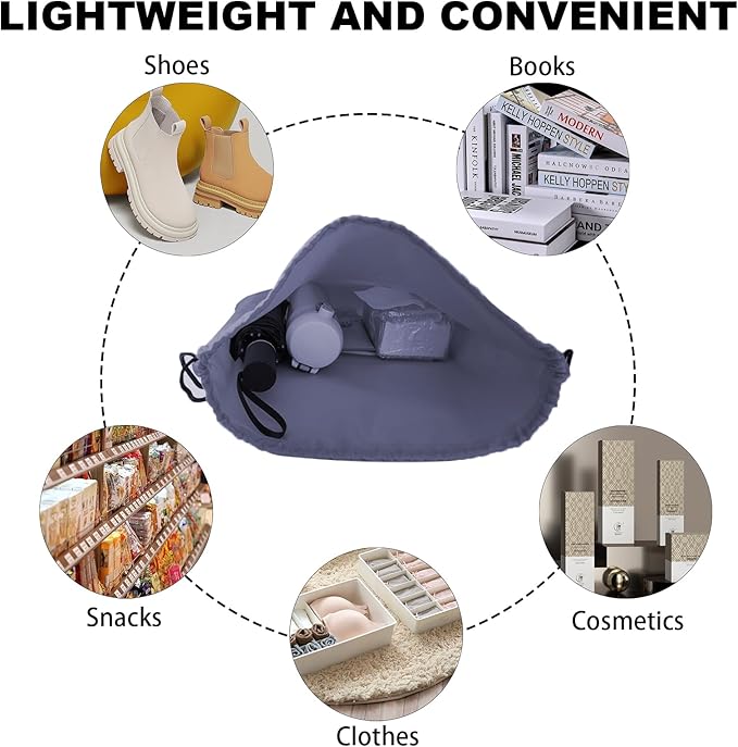 - or football, shoes, water bottles, umbrellas, lunch boxes, clothes, wallets, keys, mobile phones and other daily necessities. The drawstring design enables you to quickly store items and easily take them in and out.