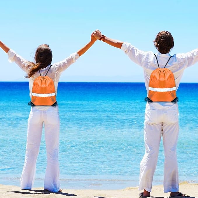 Drawstring Backpack with Reflective Strip, Bulk String Bag Cinch Sack for Gym, Sport, Travel (16Pcs, Orange)