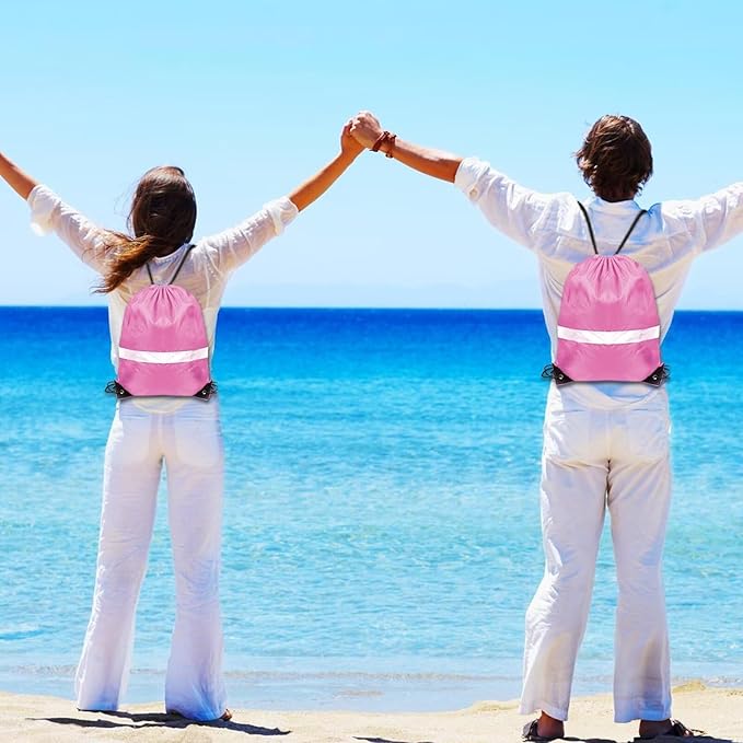 GoodtoU Drawstring Backpacks with Reflective Strip, Bulk Bags for Sport, Travel, Team (128Pcs, Pink)
