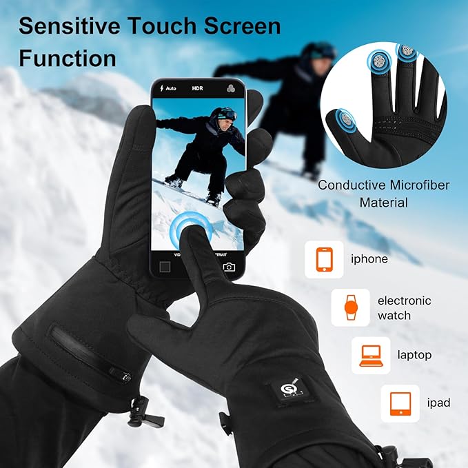 - 【30-Second Quick Heating】Our rechargeable glove liners, suitable for both men and women, heat up rapidly in just 30 seconds, offering unparalleled convenience and speed. These electric heated gloves, also ideal as heated motorcycle gloves, feature a touch-sensitive design on the thumb and forefinger, enabling effortless use of touchscreen devices even in cold winter weather. Say goodbye to the hassle of removing your gloves when operating devices like mobile phones and tablets.