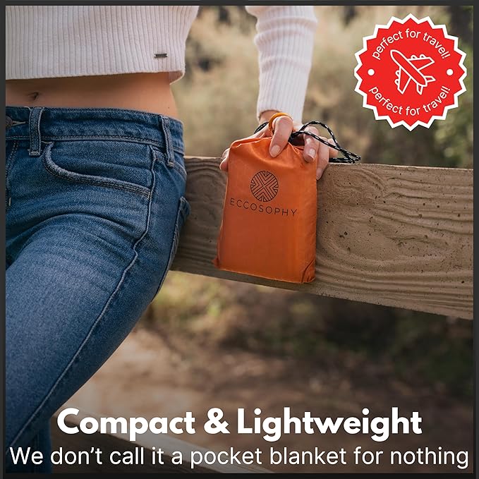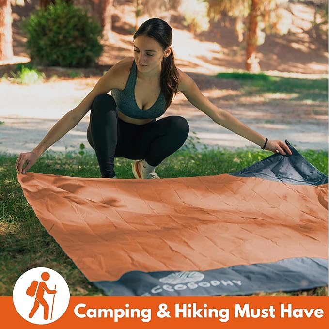 ECCOSOPHY Sand Proof & Waterproof Picnic Blanket - 60x55 Outdoor Compact Pocket Blanket, Lightweight Ground Cover for Hiking, Camping, Festivals, Sports, Travel with Bag & Stakes (Terracotta)